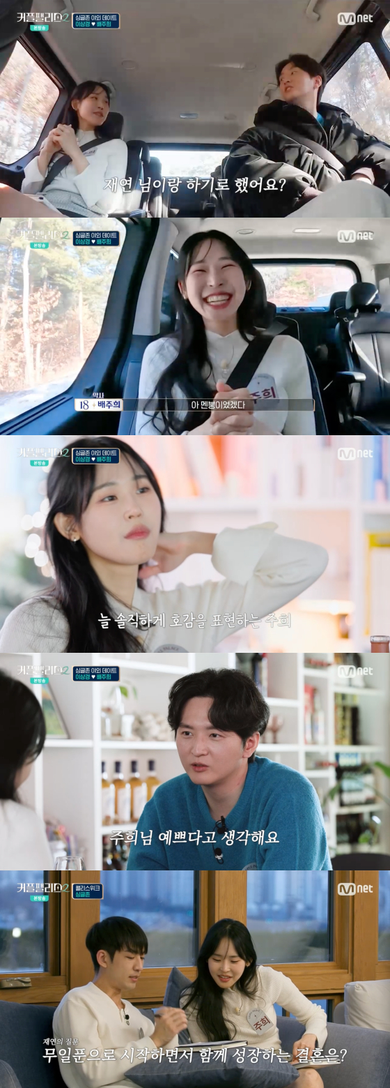 배주희는 그러면서도 이상경의 외모를 칭찬했다. 이에 이상경은 "잘생겼다는 말을 잘 못 들어봤다. 그런데 주희 님은 정말 예쁘게 생겼다. 그래서 좋다"고 배주희에 대한 호감을 다시 한번 표했다.