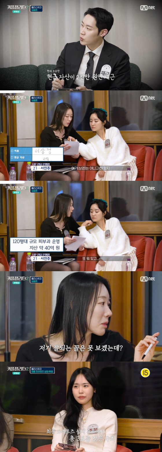 2일 방송된 엠넷 '커플팰리스 2'에서는 최종 프러포즈 상대 투표를 앞둔 싱글남녀들의 이야기가 그려졌다.
