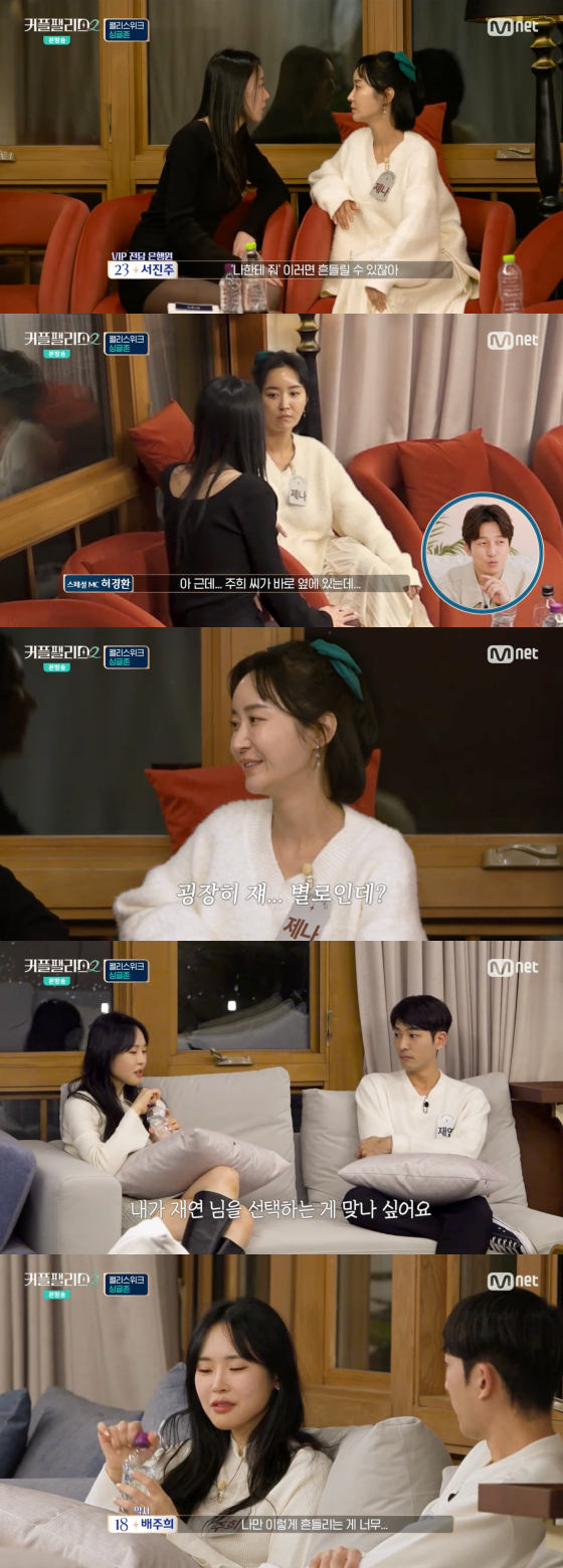 '커플팰리스2' 배주희가 서진주로 인해 혼란에 빠졌다.