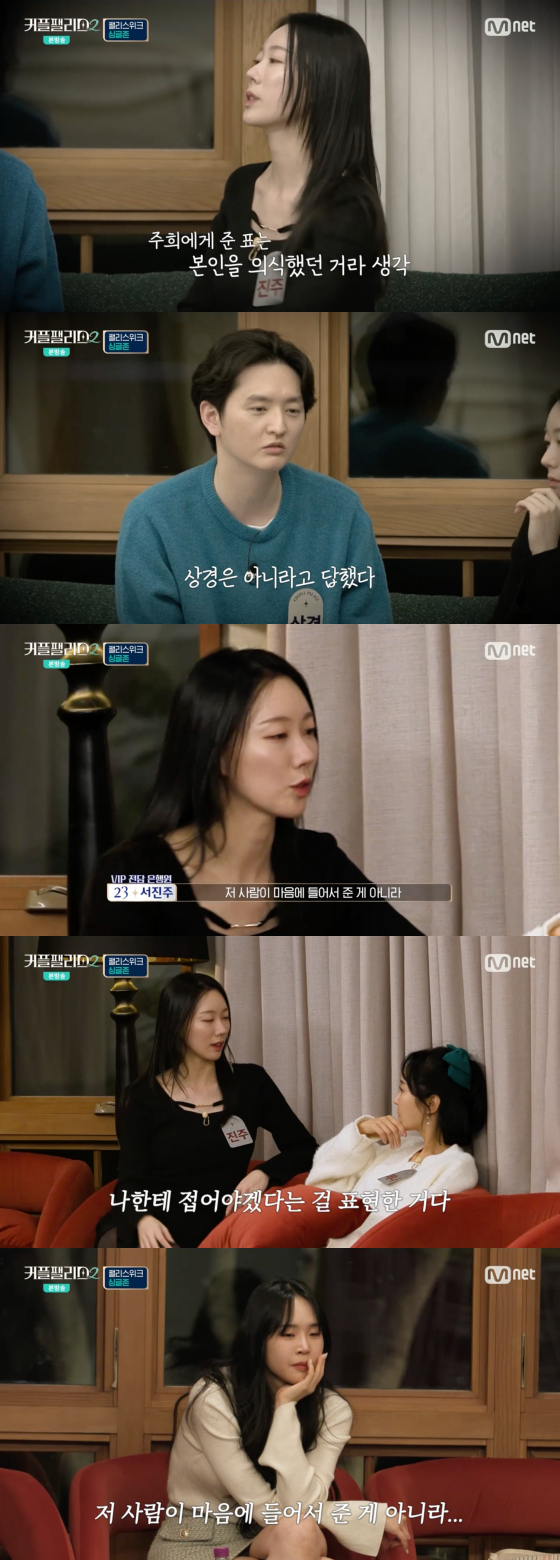 MC 미주도 "이러면 (배)주희 씨는 또 상처받고 혼란스러워지는 거다"라며 서진주의 태도에 대해 지적했다.