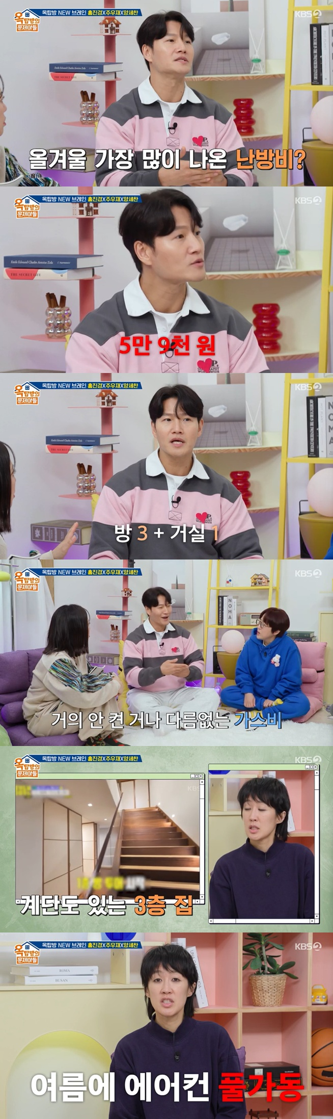 홍진경이 김종국에게 "오빠 여름에 에어컨 안 켜냐"라고 물었고, 김종국은 "잘 안 켠다. 잘 때만 켠다. 뉴스에서 난방비가 너무 많이 나온다고 하던데 나는 올 겨울 제일 많이 나온 난방비가 5만 9천 원이었다. 그런데 나는 너무 많이 나온 것 같더라. 방 3개에 거실 1개다"라고 말했다.