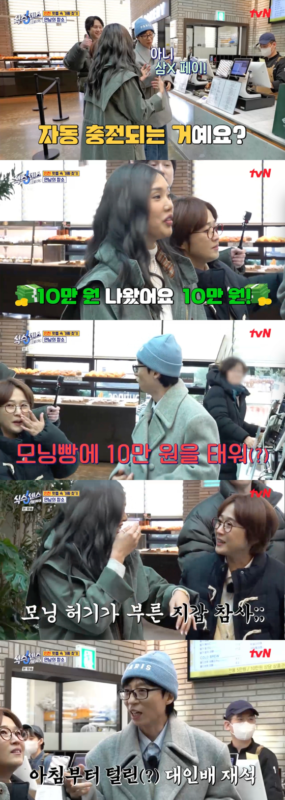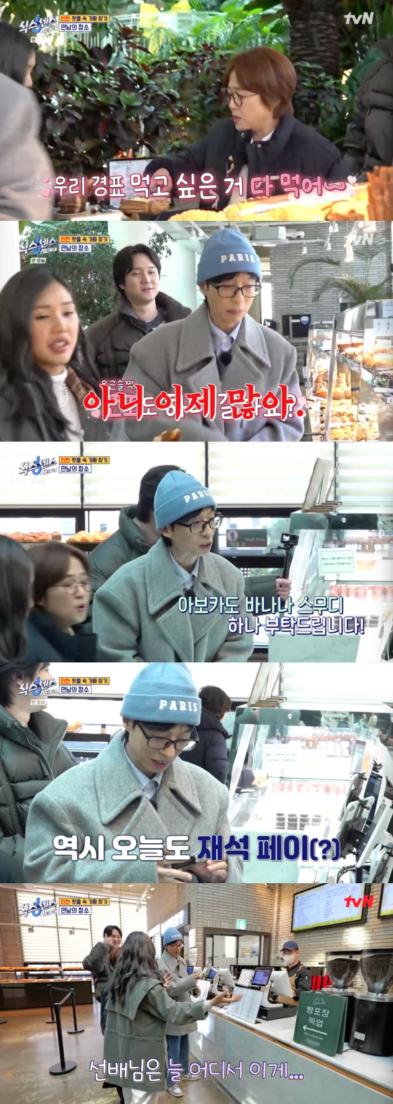 결제는 자연스럽게 유재석에게 넘어갔다. 수많은 빵에 음료까지 주문하자 총 10만 원이 나와 모두를 놀라게 했다.
