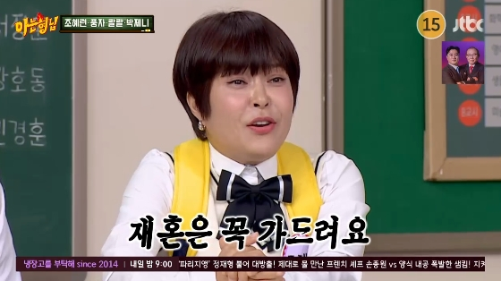 조혜련은 "DM으로 일반인에게서 축가 요청이 오는데 재혼은 꼭 간다"며 "내가 재혼해서 잘 살게 됐으니 그분들 힘내시라고 스케줄이 맞으면 간다"고 전해 촬영장을 훈훈하게 했다.