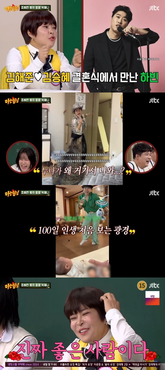 조혜련은 "강재준과 이은형이 아이를 어렵게 낳았다. 너무 기뻐서 100일 축하를 해주겠다고 했고, 음악도 안깔고 짧게 불렀다"고 당시를 회상했다.