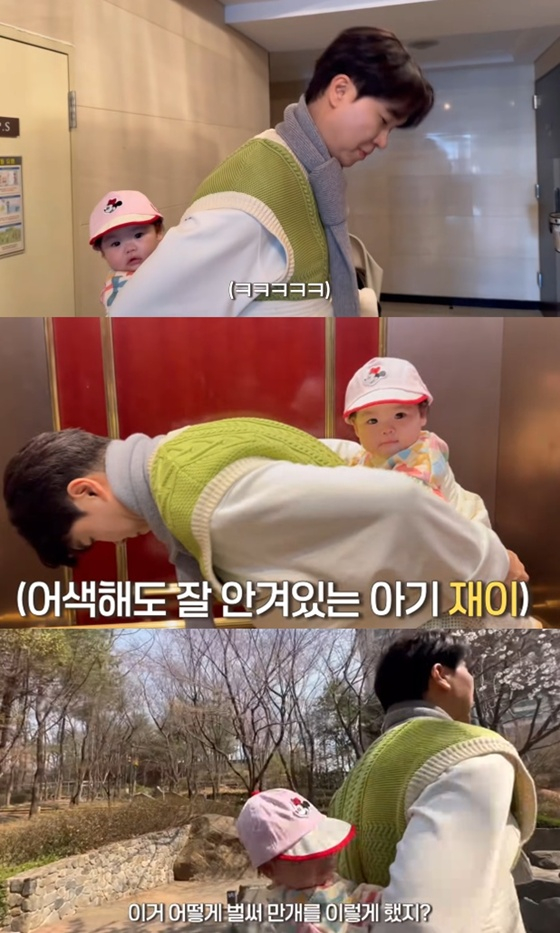 이날 박수홍은 서툰 솜씨로 포대기로 딸 재이를 업고 외출에 나섰다. 아내 김다예는 "애순아 오십에 애 낳느라고 얼마나 힘들었니. 포대기 아기 들쳐업고 애순아. 금명아 나중에 효도해라"라며 드라마 '폭싹 속았수다'에 빠진 모습이었다.