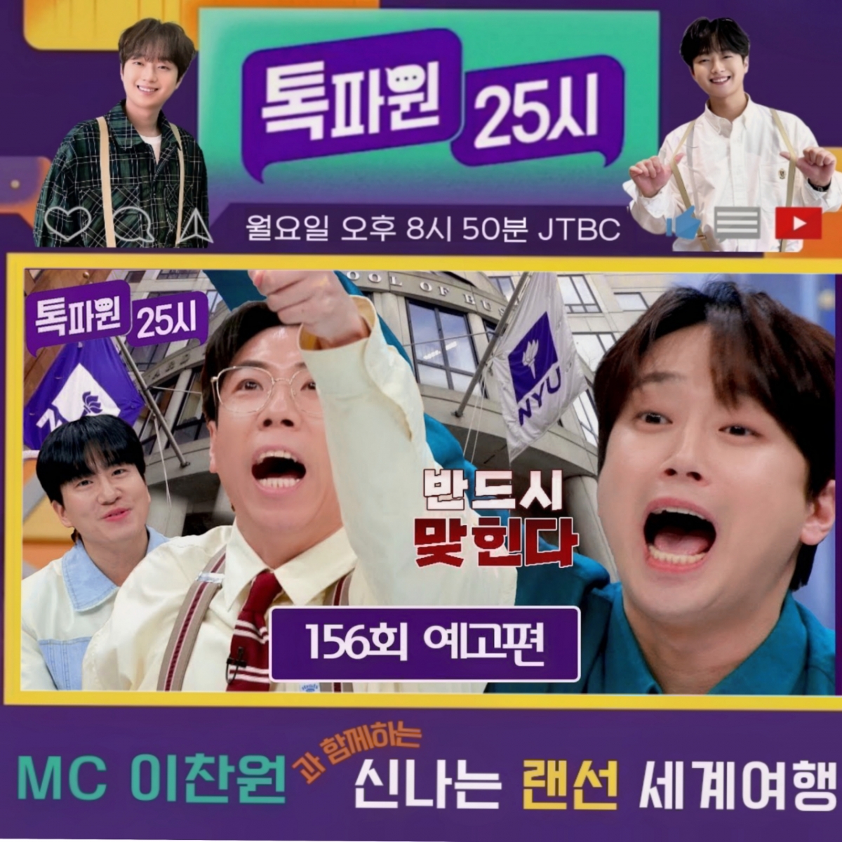 한편 오랜만에 돌아온 나줘 나줘 퀴즈시간. 뉴 톡파원의 영어 이름을 맞추는 게임이 시작되었고 이찬원 또한 포효하듯 정답을 외쳐 과연 뉴욕대 핫템을 가질 주인공은 누가 될 것인지 관심이 쏠리는 가운데 7일 오후 8시 50분 방송된다.