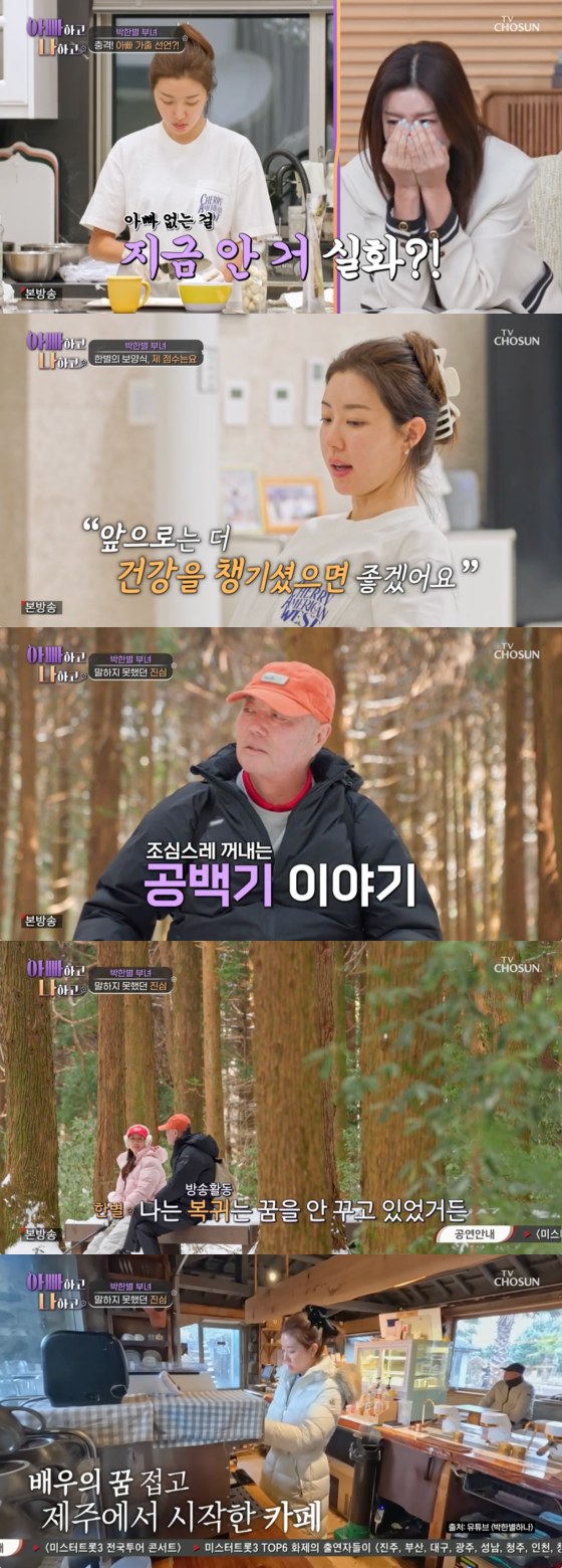 다음 날 두 사람은 오름 산행에 나섰다. 아버지가 "이제 다시 복귀해서 너 하고 싶은 것도 하고 그랬으면 한다"고 말하자 박한별은 "나는 방송 활동 복귀는 꿈도 안 꾸고 있었다. 다른 일을 찾아야겠다고 생각했다"고 털어놨다.