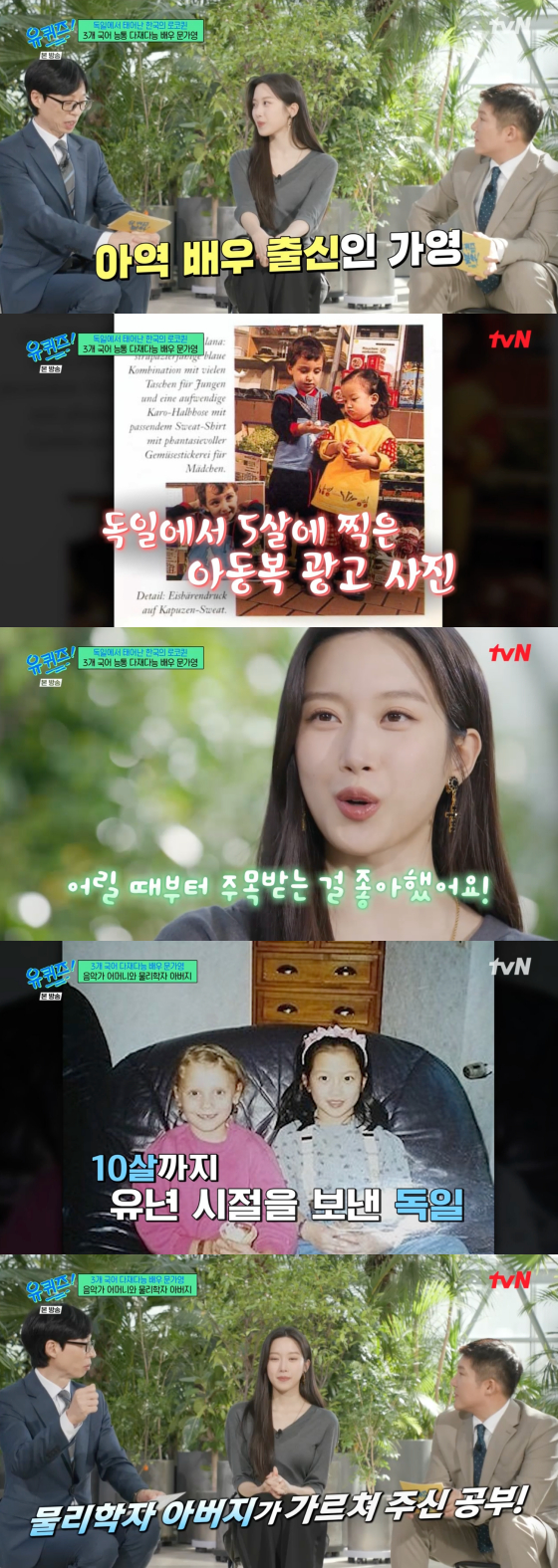 그는 "독일에 살 당시 동양인이 많이 없었다. 그때 어린이 의류 광고 모델로 길거리 캐스팅을 당했다. 주목받는 걸 좋아했다. 엄마한테 카메라 셔터 소리가 좋다고 했다더라"고 데뷔 일화를 밝혔다.
