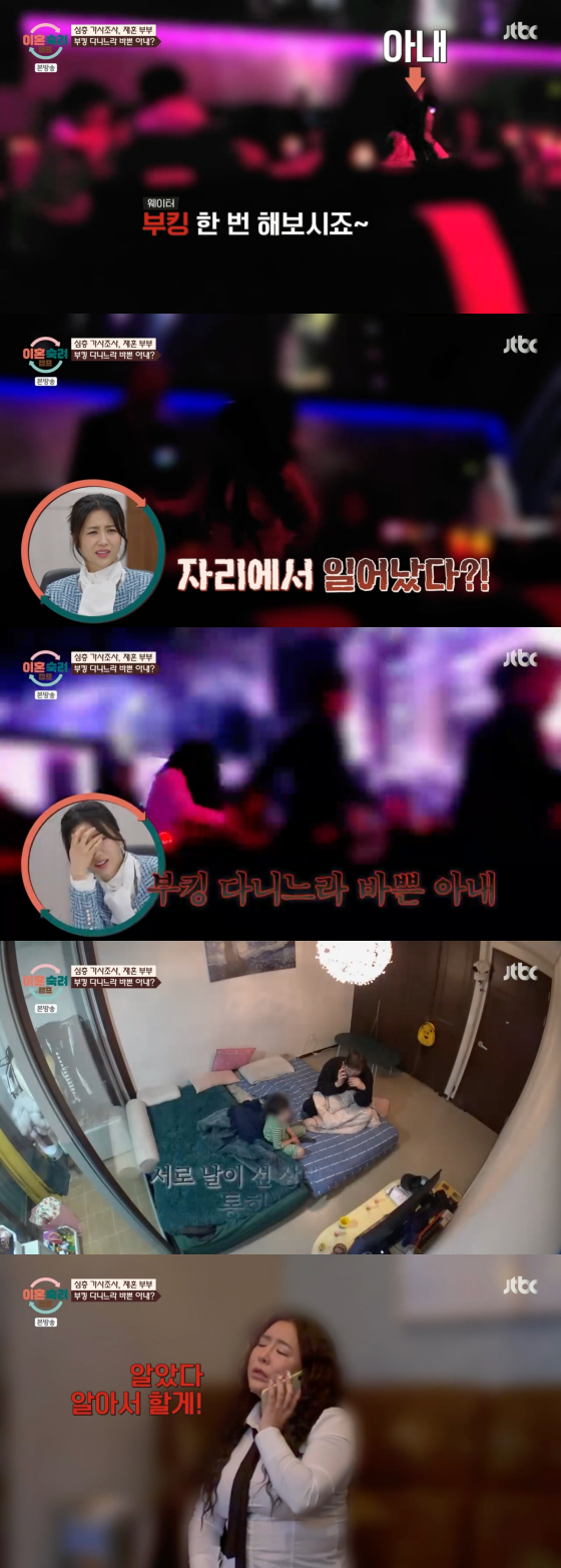 남편 측 진태현은 "제가 들은 게 있다. (아내가) 룸은 아니고 테이블석에서 부킹을 했다. 대머리 아저씨랑 부킹을 했다"고 설명했다.