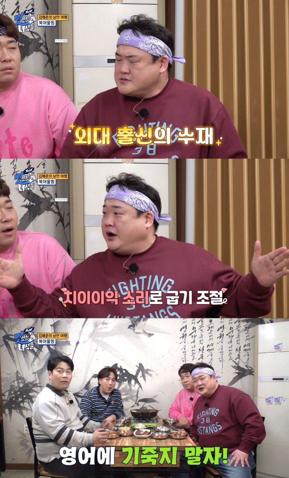 이어 문세윤은 김준현과의 해외 촬영 일화를 공개하며 "외국 촬영을 나가면 나는 한마디도 못 한다. 그런데 준현이 형은 기죽지 않는다. 깡이 있다"고 밝힌다.
