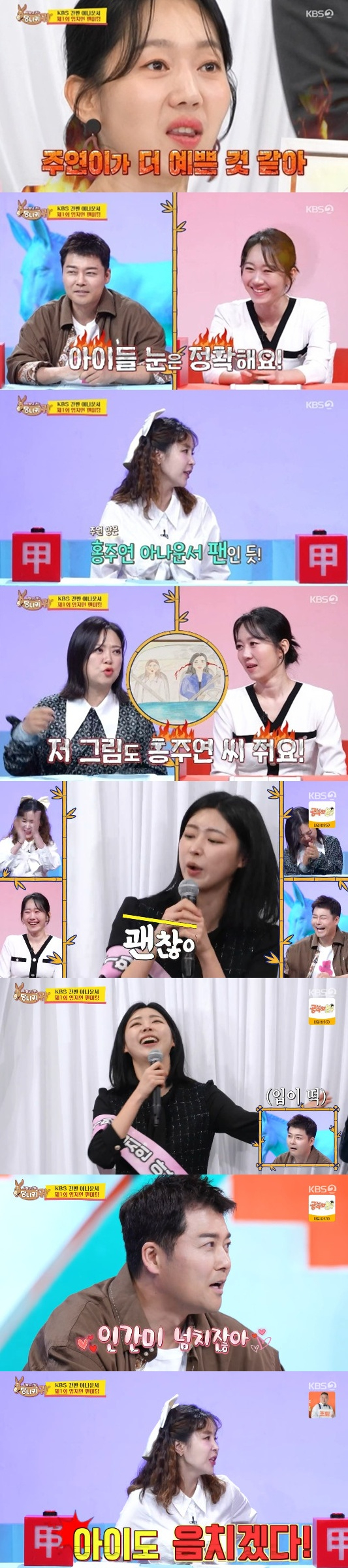 그는 박명수, 김숙이 "지금 이 발언 괜찮겠냐"라며 짓궂게 몰아가는 상황에서도 "애들 눈은 정확하다"라고 거듭 홍주연에 대한 애정을 표했다.