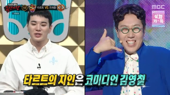 연예인 판정단의 엇갈리는 의견에 힌트를 주기 위한 전화연결이 진행됐다. 이때 '타르트'의 지인으로 김영철이 깜짝 등장했다.