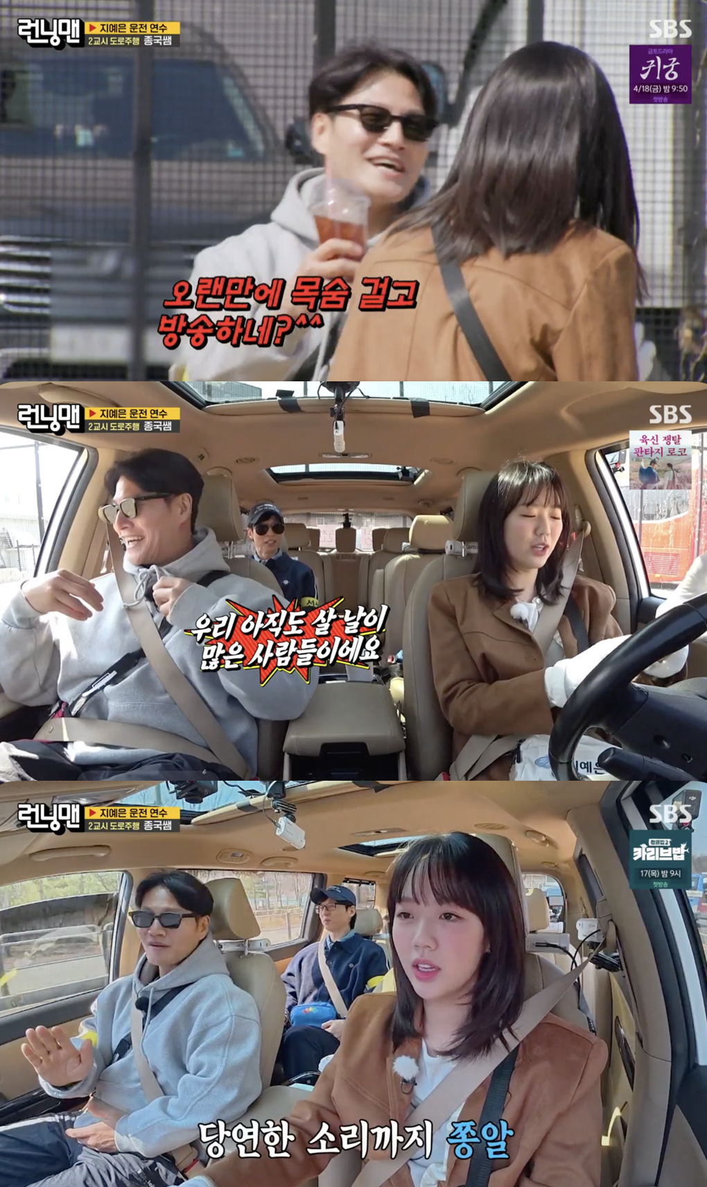한편 김종국은 지예은 옆자리에 탑승한 뒤 "저 장가도 가야 한다. 뒤에 앉은 형은 애도 있고"라며 안전 운전을 당부해 현장을 웃음바다로 만들었다.