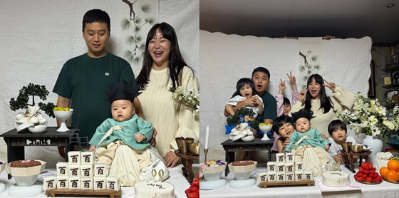 공개된 사진 속에서 정주리는 남편과 다섯 아이들과 함께 백일상 앞에서 행복한 미소를 짓고 있다. 아이들은 저마다 익살스러운 표정과 개구진 포즈를 취하며 매력을 발산하고 있다.