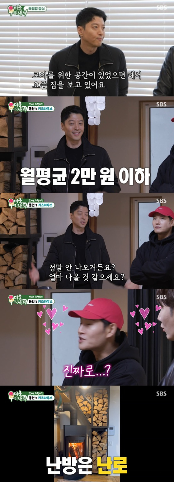 이동건은 목수 아빠가 아이들과 함께 디자인한 키즈 하우스로가서 집을 소개해 눈길을 끌었다. 이동건은 복층 구조의 주택임에도 관리비가 2만원대 밖에 나오지 않는다고 말해 놀라움을 자아냈다.