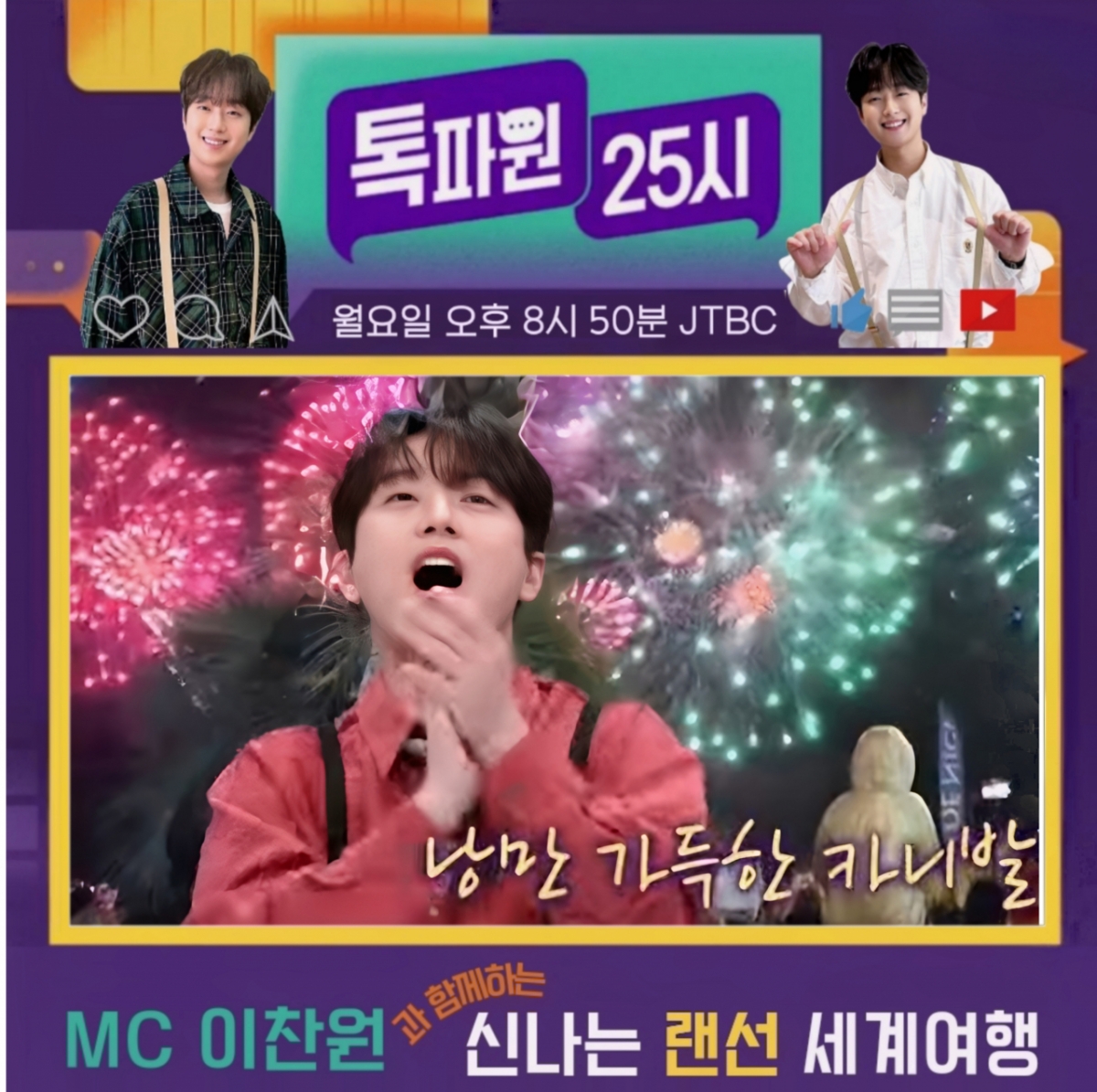두 번째 랜선 여행은 프랑스 니스. 세계 3대 카니발 중 하나인 니스 카니발에 프랑스 귀족 복장으로 변신해 입장하는 톡파원의 모습을 본 이찬원은 고개를 뒤로 젖히며 깔깔거리며 웃어 유쾌함을 선사했다.