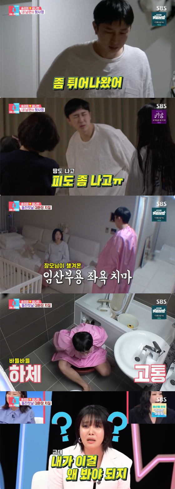 이날 슬리피는 새벽부터 잠에서 깨 화장실로 향했다. 그는 화장실에서 비명을 질렀고 아내 김나현에게 "좀 튀어나왔다. 피도 좀 났다"고 토로했다.
