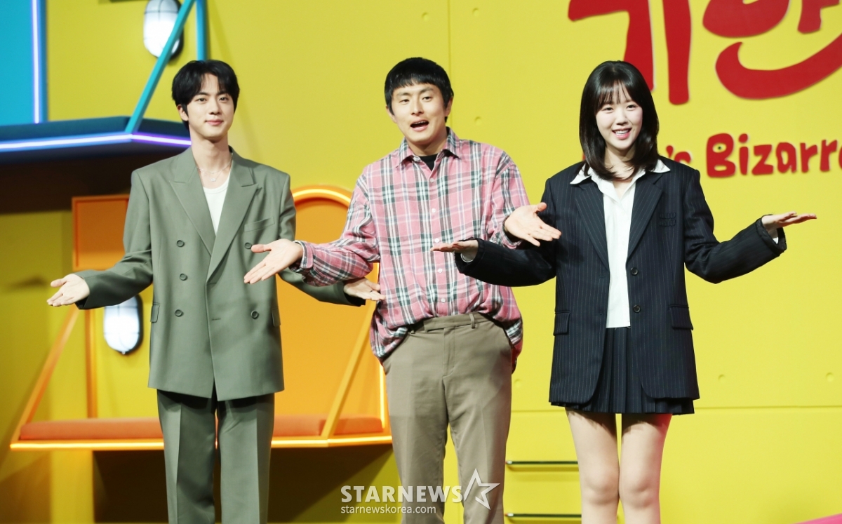 연예방송진-기안84-지예은 '기안장으로 오세요'[★포토]발행 : 2025.04.15 ・ 11:24김휘선 기자그룹 방탄소년단(BTS) 진, 방송인 기안84, 배우 지예은이 15일 오전 서울 종로구 JW매리어트 동대문에서 열린 넷플릭스 시리즈 새 예능 '대환장 기안장' 기자간담회에서 포즈를 취하고 있다. /2025.04.15<저작권자 © 스타뉴스, 무단전재 및 재배포 금지>지예안장방탄소년단서울종로구매리어트추천 기사김휘선 기자기자홈좋아요 연예-방송의 인기 급상승 뉴스연예-방송의 최신 뉴스