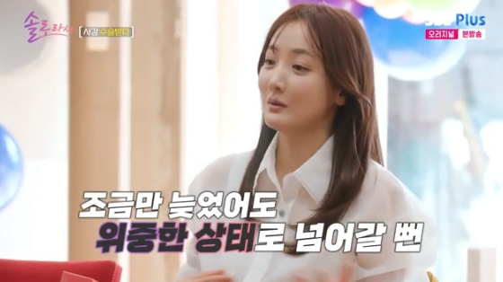 15일 방송된 SBS Plus·E채널 예능 '솔로라서'에서는 '솔로 언니' 사강이 황정음의 둘째 아들 강식의 생일파티 준비를 도와주던 중 수술 사실을 털어놔 안타까움을 자아냈다.