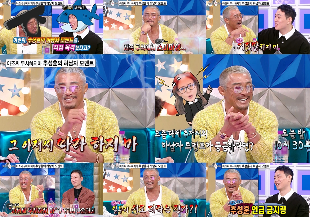 16일 방송되는 MBC '라디오스타'(기획 강영선 / 연출 김명엽, 황윤상, 변다희)는 추성훈, 정석용, 남창희, 이관희가 출연하는 '하(下)남자가 있어~' 특집으로 꾸며진다. 방송에 앞서 '"아조씨 무시하지 마" 추성훈의 하남자 모멘트'라는 제목의 영상이 선공개됐다.