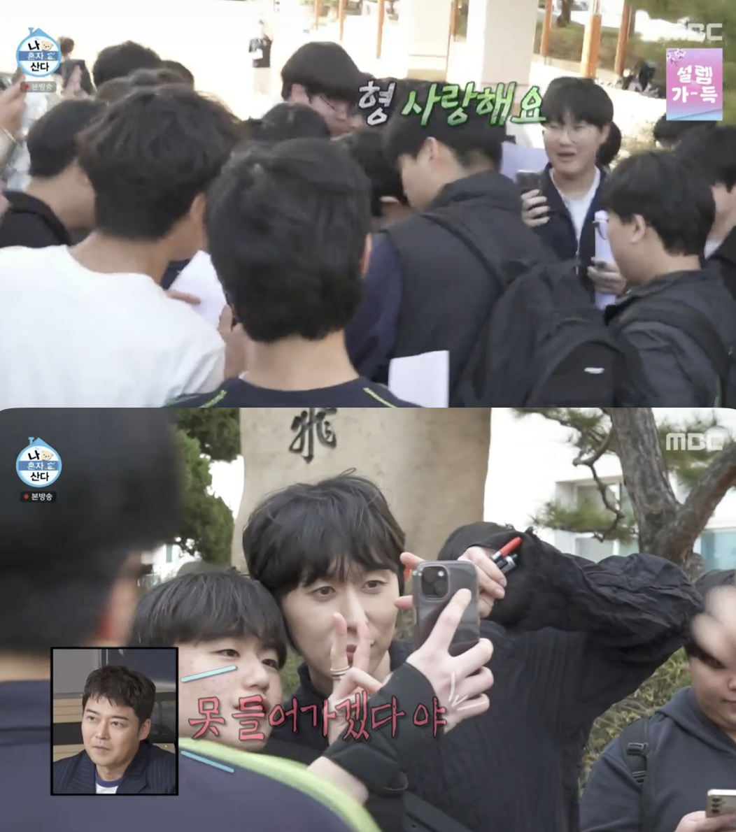 그가 차를 타고 교문에 들어서자, 실물을 보기 위해 모인 학생들이 인산인해를 이뤘다. "형 사랑해요!"를 외치는가 하면, 손 한번 흔들 때마다 환호성이 터져 마치 월드스타 내한 현장을 방불케 했다.