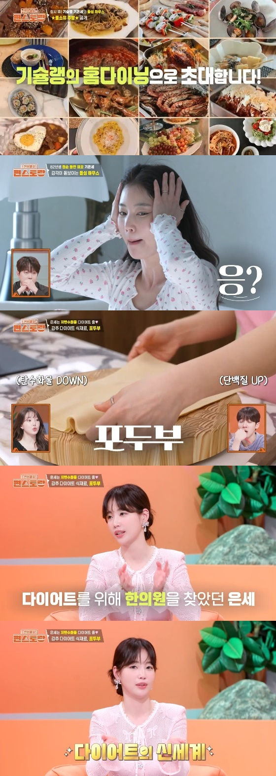기은세는 "제가 요즘 저탄고지 식단을 하고 있다"며 "다이어트를 위해 한의원에 갔는데, 한의사가 탄수화물을 적게 먹으면 굶지 않고 다이어트를 할 수 있다고 해서 그때부터 신세계가 열렸다"며 몸매 관리 비결을 공개했다.