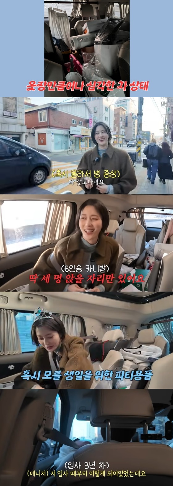 이현이의 매니저는 언제부터 차량에 짐이 쌓이게 됐느냐는 제작진의 질문에 "입사 때부터 이렇게 돼 있었다"며 3년째 한결같은 차량 상태를 고발했다.
