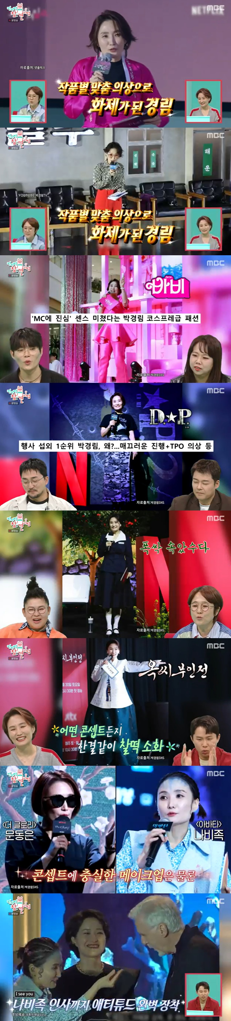 박경림은 작품에 맞는 콘셉트의 의상을 입는 것으로도 유명하다. 그는 "제가 문을 열어서 제일 먼저 선을 보이는 사람이어서 의상도 맞았으면 좋겠다는 생각이 들었다. 한 달 전부터 의상 피팅을 한다"고 밝혔다.