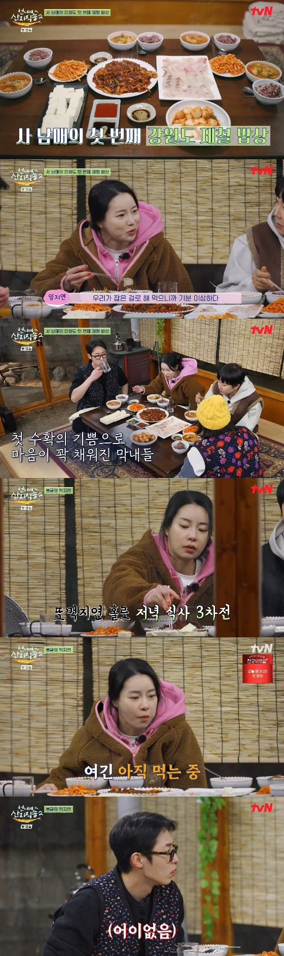 20일 방송된 tvN '언니네 산지직송2'에서는 강원도 고성으로 향한 사남매 염정아, 박준면, 임지연, 이재욱이 제철 밥상을 준비하는 모습이 그려졌다.