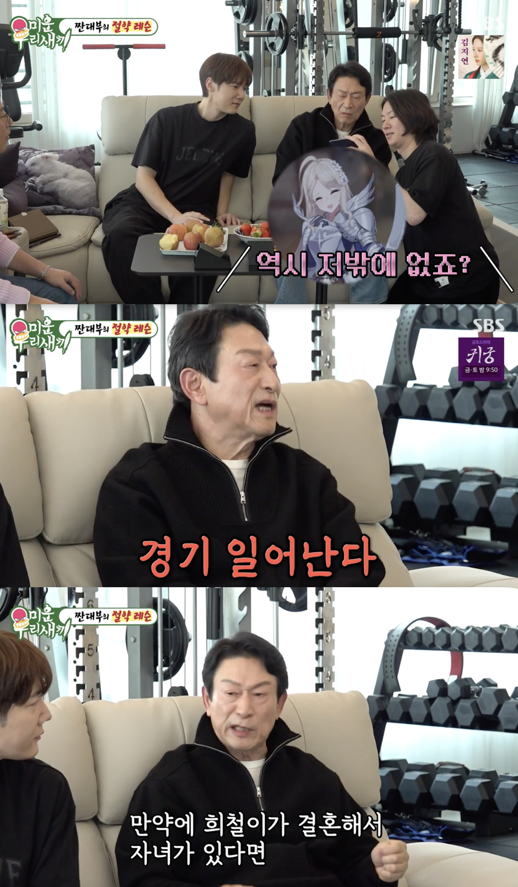 이날 세 사람은 김응수에게 가계부를 공개하며 자신의 소비 습관을 털어놓는 시간을 가졌다. 김희철은 "소비 내역 중 90%가 게임"이라고 고백해 모두를 놀라게 했다. 이어 게임 속 캐릭터를 보여주며, 캐릭터가 "역시 저밖에 없죠? 자기?"라고 말하는 장면을 들려준 뒤, 김응수에게 "'자기' 소리 들으면 좋지 않냐"고 물었다.