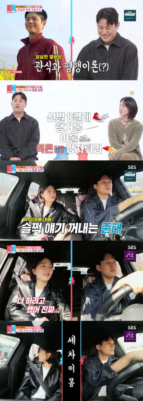 깨끗한 걸 좋아하는 엄준태는 일주일에 한 번씩은 꼭 세차를 한다고. 박승희와 외출한 엄준태는 "세차 후 창문에 얼룩이 생길 수 있으니 절대 창문을 내리면 안 된다"고 신신당부했지만 박승희는 자기도 모르게 창문을 내려 눈치를 봤다.