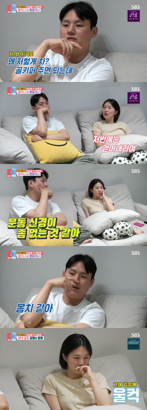계속되는 지적에 박승희는 "오빠랑 같이 보기 싫다. 아침부터 계속 한숨 쉬고, 오늘도 보면 한두 개가 아니다. 물론 내 잘못도 있지만 오빠는 꼭 얘기할 때 한숨부터 쉬지 않냐"고 폭발했다.