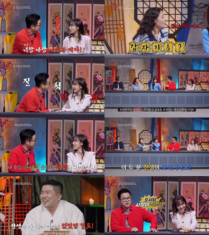 뿐만 아니라 지상렬은 전생에 대한 이야기를 나누던 도중 윤태진에게 "나 오늘 윤태진 봤는데 전생 생각났다. (윤태진이)가게를 하고 있더라"고 상황극을 펼쳤다. 보다 못한 이혜지는 무속인들에게 지상렬과 윤태진의 전생을 물어봤고, 천명도사는 "두 분은 전생에 인연이 없었던 것 같다"고 조심스레 답했다. 지상렬은 못마땅한 듯 "도사님, 사방이 막혔다"고 말해 모두를 웃겼다.
