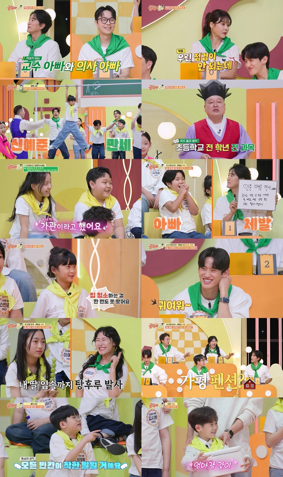 또한 이날 아이들의 기발한(?) 정답 유추가 재미를 선사하기도 했다. 현영 아들 최태혁은 특별 음악 시간 중 '예쁜 아기곰' 가사를 맞히는 문제에서 "빈칸에 들어갈 말은 다 착한 말일 것 같다"고 순수한 추측을 제기해 흐뭇한 미소를 자아냈다. 그런가 하면 이대훈 아들 이예찬은 2학년 통합교과 문제에서 '뱀에 물리지 않는 방법'을 묻자 "잡아서 그냥 키우면 되잖아요"라고 엉뚱발랄함으로 응수해 미소를 유발했다.