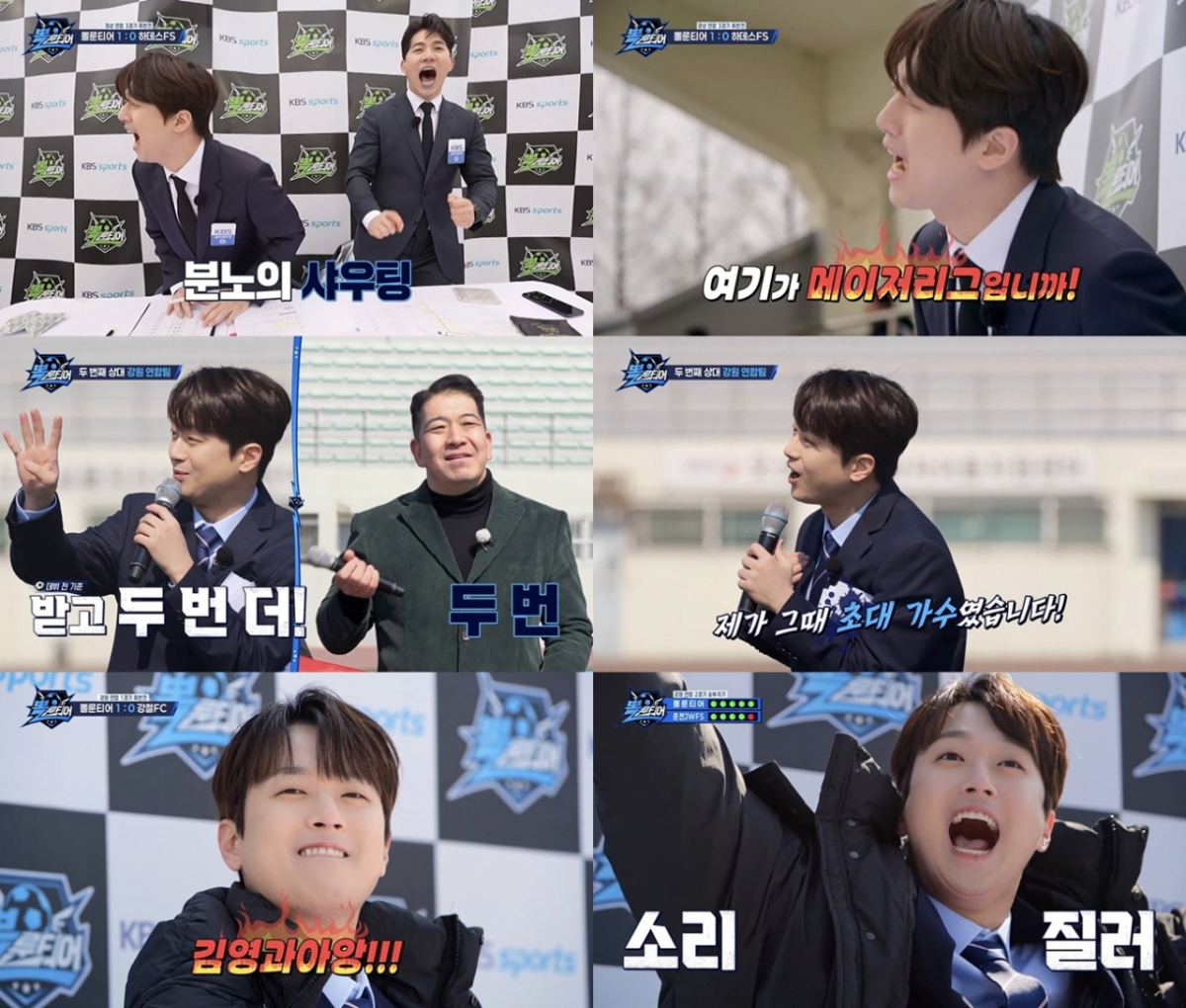 한편 강원 연합과의 경기에서는 '전국노래자랑' 2회 출연 경력의 상대팀 감독이 등장했다. 그가 "제 라이벌은 이찬원"이라고 하자 이찬원은 "저는 '전국노래자랑' 네 번 출연했다", "제가 그때 초대가수였다"라며 단호박 입담을 뽐냈다. 그리고 상대의 '통춤' 개인기에 '뽈룬티어의 공식 춤꾼' 현영민을 무대로 이끌며 분위기를 한껏 고조시켰다. 남다른 예능감으로 '뽈룬티어'를 이끌고 있는 이찬원이 앞으로 펼칠 눈부신 활약도 기대가 모아진다.