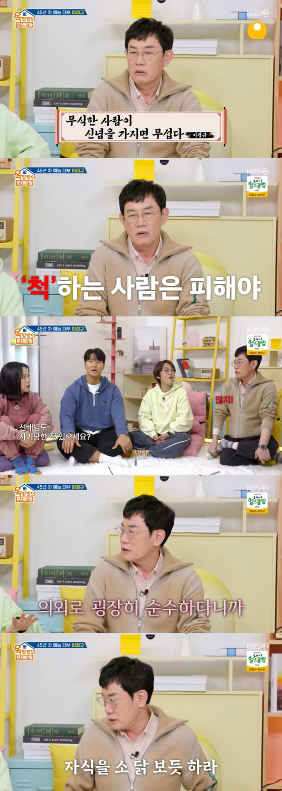 이날 이경규는 '무식한 사람이 신념을 가지면 무섭다'는 자신의 명언을 언급하며 "이상한 신념을 가진 사람들은 피하는 게 낫다"고 말문을 열었다.