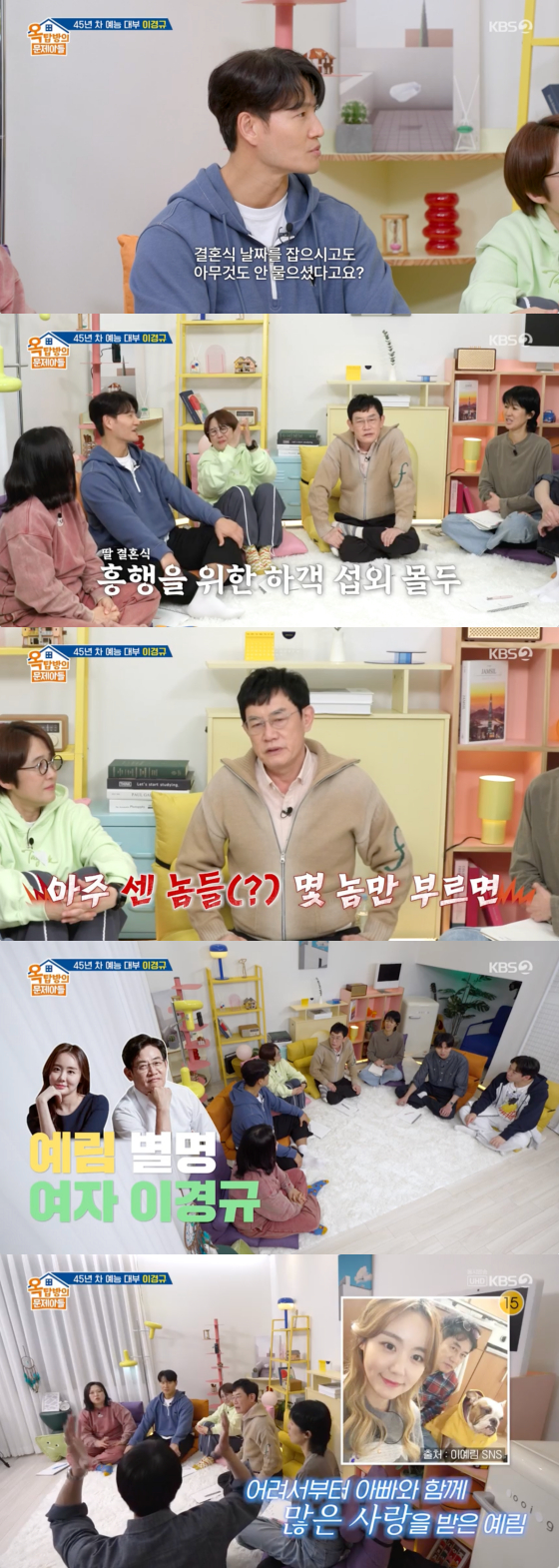 이에 송은이가 "(이예림의) 결혼식 때 왜 후배 전체한테 청첩장을 안 돌렸냐"고 물어보자 이경규는 "센 놈들 몇 명만 부르면 돈이 된다"고 답했다.