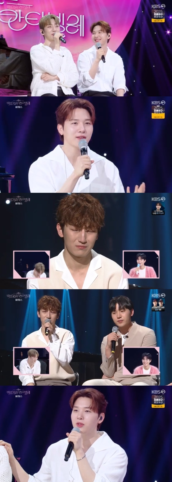 무대 화면에는 과거 '유희열의 스케치북' 촬영 당시 정동환이 김민석을 향해 눈물을 흘리는 장면이 등장해 두 사람을 당황케 했다.