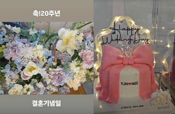 배우 한가인이 남편 연정훈과 결혼 20주년을 자축했다.