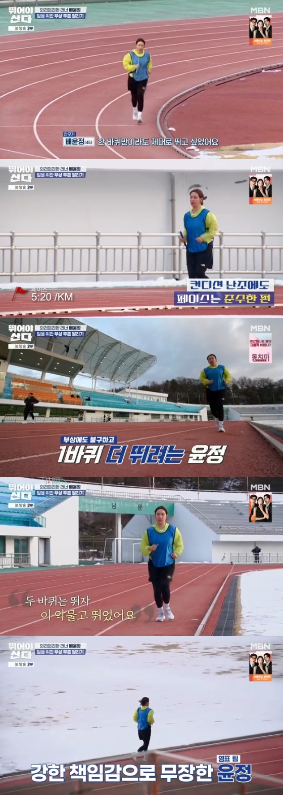 힘겨운 레이스를 마친 배윤정은 "'다리만 괜찮았어도'하는 생각이 들면서 몸이 내 맘대로 움직이질 않으니까 화나고, 답답하고, 짜증 나고 속상했다"고 안타까워했다.