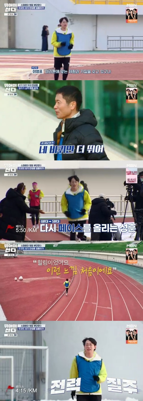 26일 방송된 MBN 예능 프로그램 '뛰어야 산다'에서는 션 단장과 이영표 부단장을 중심으로 '뛰산 크루' 16인이 첫 공식 훈련에 돌입하는 모습이 그려졌다.
