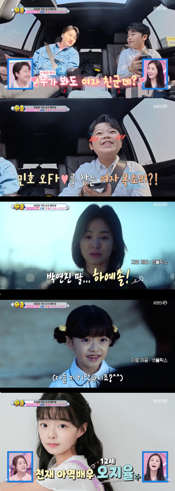 트로트 가수 황민호가 아역 배우 오지율과 다정한 대화를 나눴다.