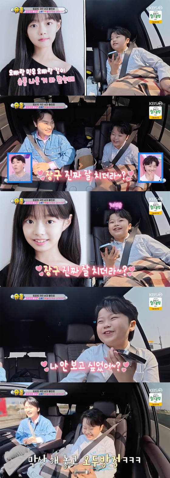 황민호는 용기내 "몇 학년 됐냐. 친구들은 많이 사귀었냐"고 질문했다. 오지율은 "5학년이다. 친구들 많이 사귀었다"고 답했다.