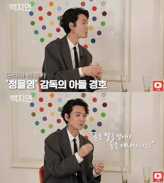 이날 게스트로 출연한 정경호는 "아버지를 보면서 배우고 자랐다. 배우라는 거를 시작할 때 아버지가 해줬던 말이 있다. '좋은 사람이 돼야 좋은 말을 뱉고, 좋은 말을 뱉어야 좋은 대사가 나오고, 좋은 대사를 뱉는 사람이 좋은 배우가 된다'는 말이 어린 나이에 크게 뇌리에 박혔다"고 말했다.
