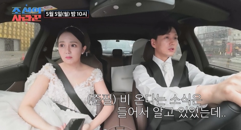 이러한 복잡한 감정들 속, 강은비 부부의 결혼식 당일 모습도 공개됐다. 변준필은 창밖으로 세차게 쏟아지는 빗줄기를 바라보며 걱정을 감추지 못했고, 이를 본 김지민은 "비 오면 하객들 오는 길이 불편할까 봐..."라며 공감했다.