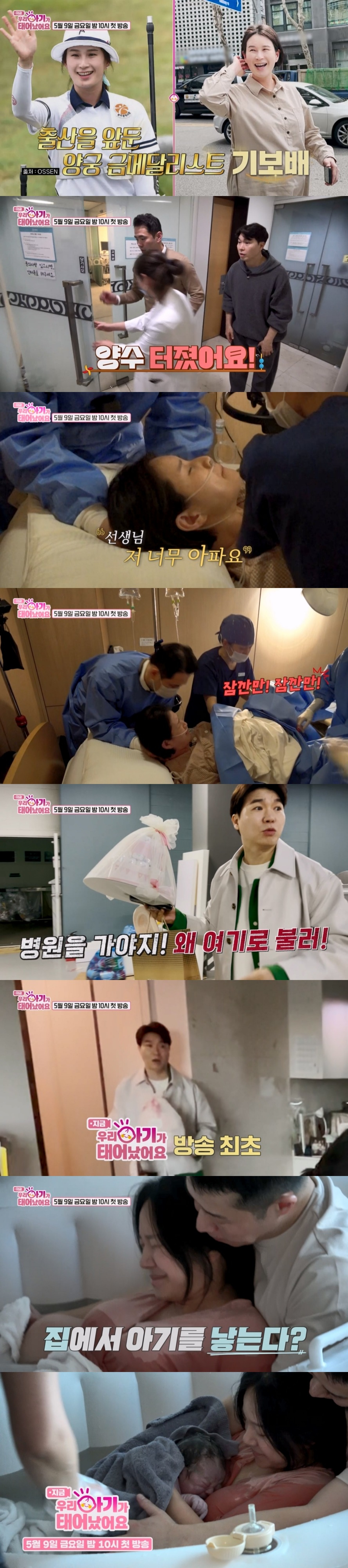 '우리 아기가 태어났어요'가 '양궁 여제' 기보배의 출산현장, 그리고 드물게 병원 아닌 집에서 아기를 낳는 가정출산 현장에서 놀란 MC 박수홍을 포착했다.