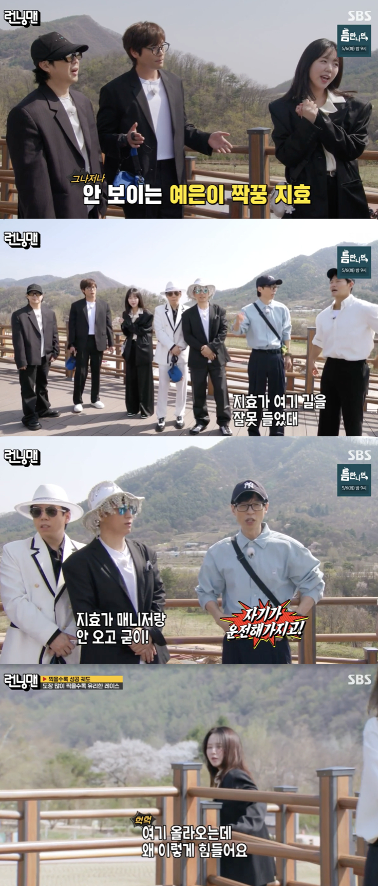 하지만 현장에 송지효의 모습은 없었고, 유재석은 이를 언급하며 "(송)지효가 길을 잘 못 들었대. 길을 헤매고 있다"라고 상황을 전했다. 지석진도 "지효가 매니저랑 안 오고 굳이 자기가 운전해서 그렇다. 곧 도착한다"라고 덧붙이며 웃음을 자아냈다.
