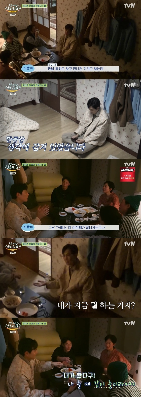 이정재는 "나는 솔직히 내 부모님이랑 더 많이 여행도 다니고 싶고, 시간을 보내고 싶은데 이 양반들은 계속 나이를 드신다. 그냥 TV에서 '아, 이정재가 잘나가는구나. 많이 나오는구나'하고 박수치시는 것밖에 없으니까 '내가 지금 뭘 하는 거지?'라는 생각이 든다. 이게 되게 딜레마 같다"고 고백해 안타까움을 자아냈다.