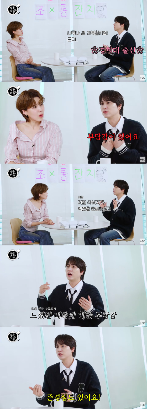 이에 규현은 "두뇌 서바이벌에서는 등수가 학벌로만 갈리지 않는다는 걸 느꼈다"며 "경희대학교는 제게 너무나 큰 자부심인데 사실 학벌에 대한 자격지심이 있다"고 답했다.