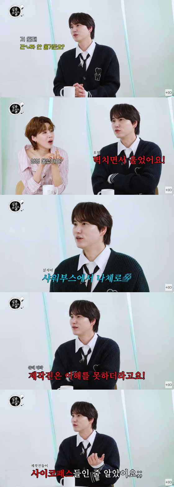 장도연이 "이성을 잃은 적도 있냐"고 묻자 규현은 "원래 정말 안 운다. 1년에 한 번 울까 말까인데 화장실에서 벽을 치면서 울었다"고 답했다.